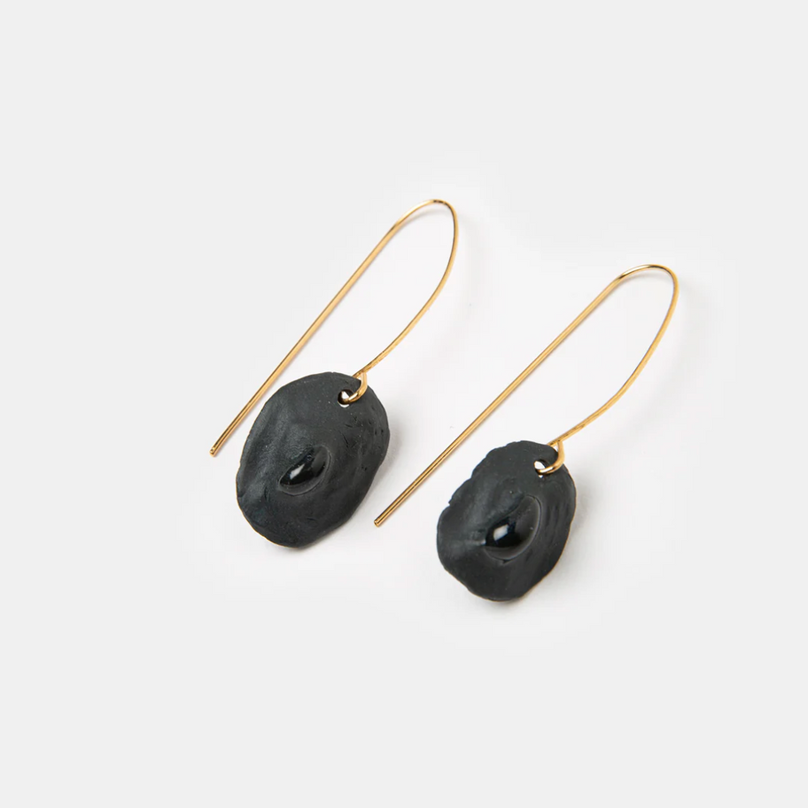 Entre maternité et sensualité, le tabou se transforme en boucles d'oreilles énigmatiques qui scintille de mystère dans un blanc absolu ou un noir mat rehaussé d'un éclat de lumière.