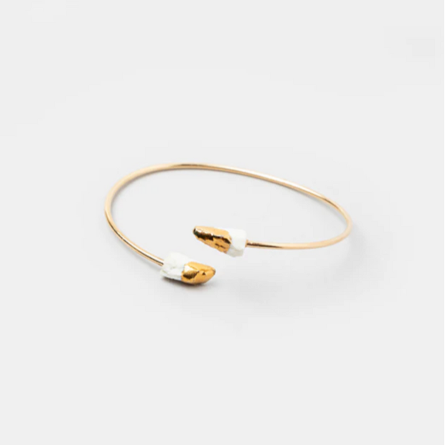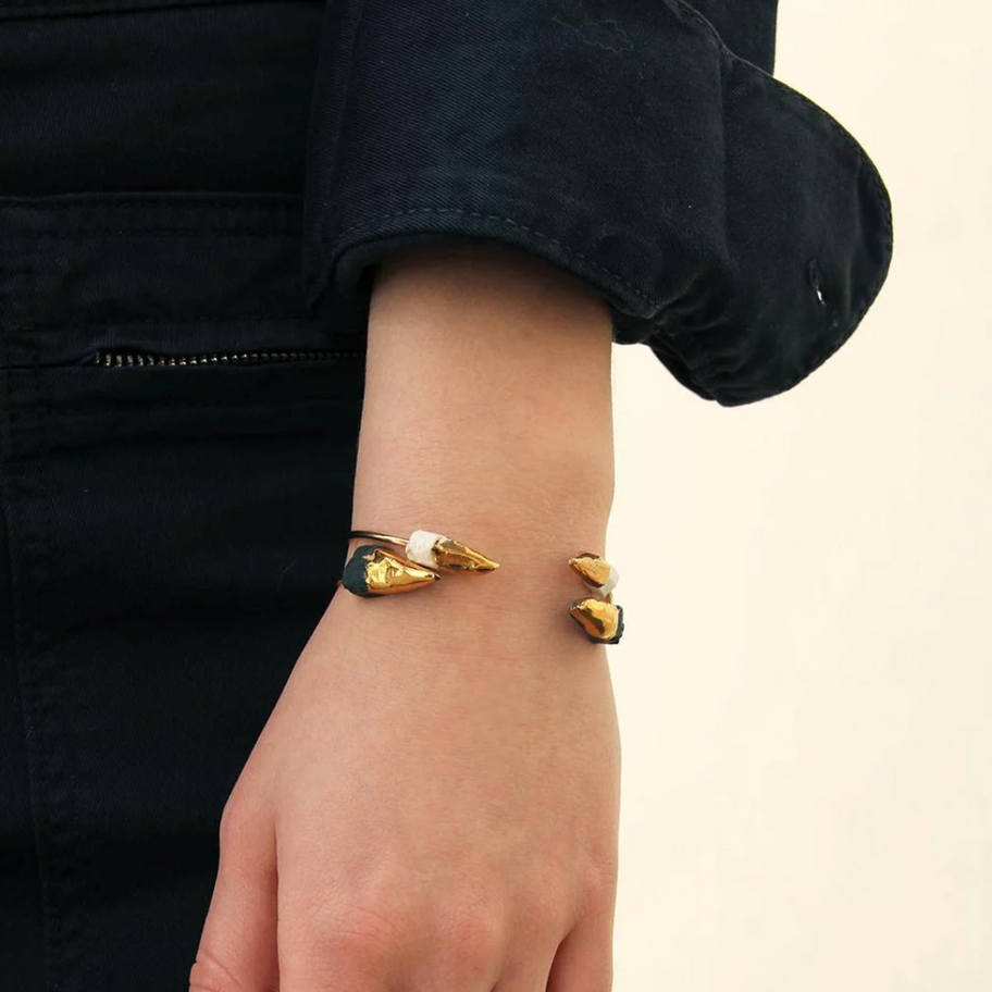 Le Bracelet Griffor est issu de la collection Ruée Vers L'Or, qui s'inspire des premiers gestes de l'homme pour transformer la matière et faire naître des perles de porcelaine uniques.